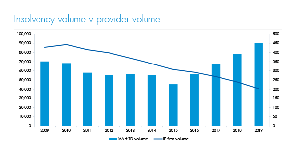 Aperture (the UK’s second largest IVA provider) ceased writing new IVAs in 2019, with the book now being supervised to an orderly closure over the next 5-6 years.